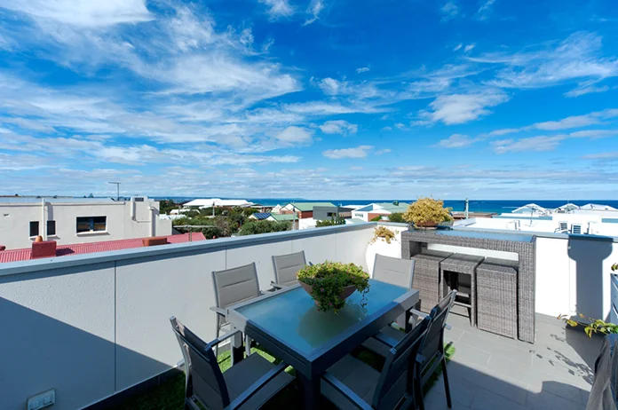 Contemporary design over 3 levels including a rooftop deck with views of the bay